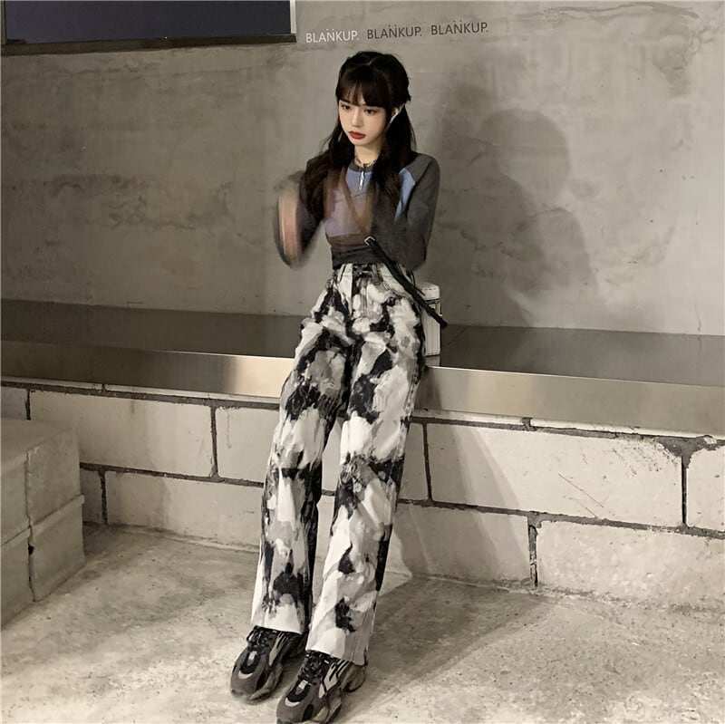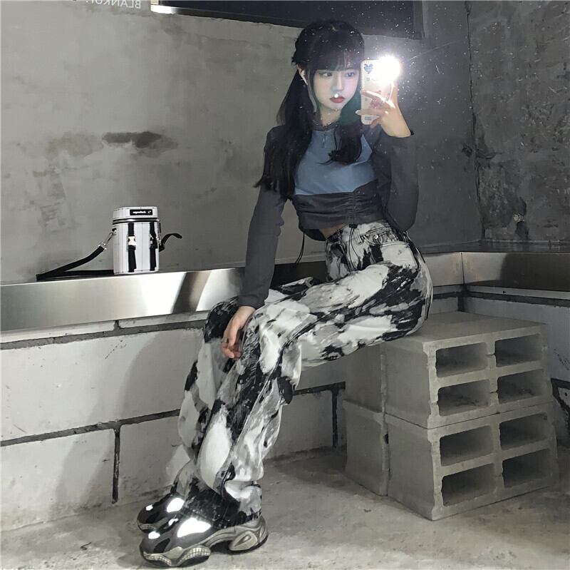 色:ステッチドローストリングTシャツ,絞り染めジーンズ
