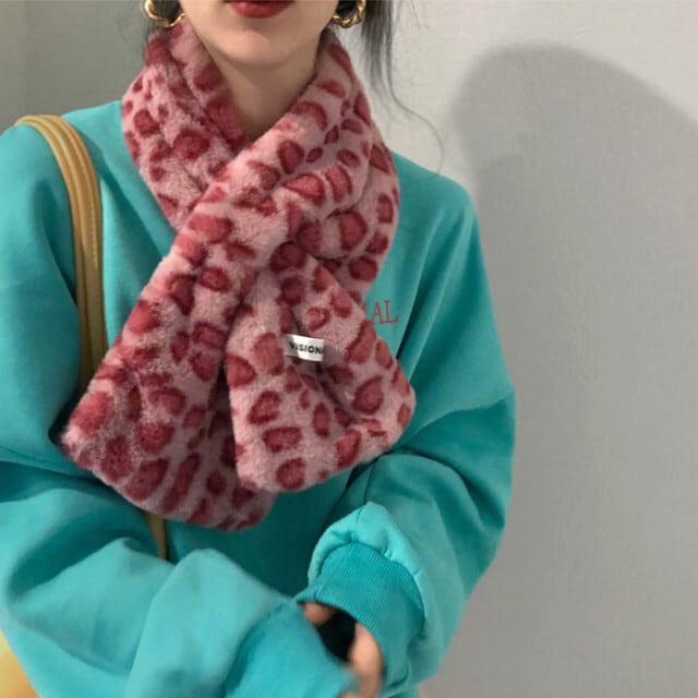 スプリングレオパードプリント柄スカーフ レッド ピンク 春物 kumikum47383342760
