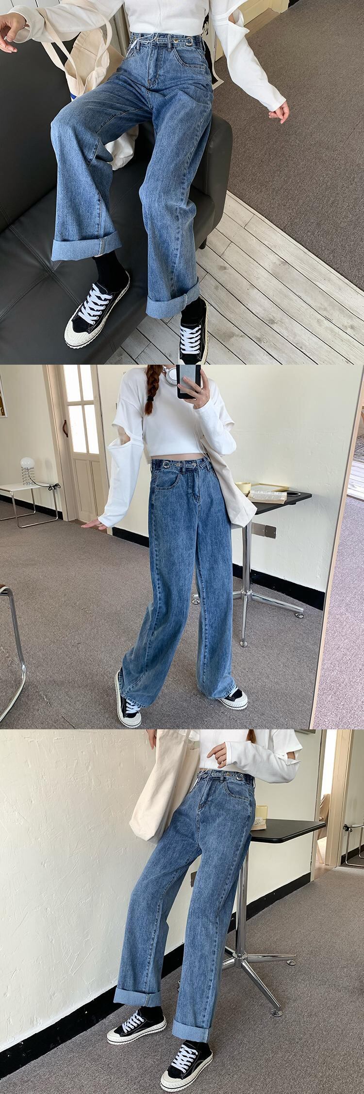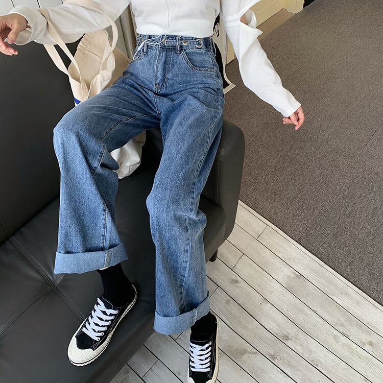 ストレッチハイウェストジーンズ スタイルルーズ薄手パンツ グリーン レッド エラスティック 伸縮 kumikum34684812959
