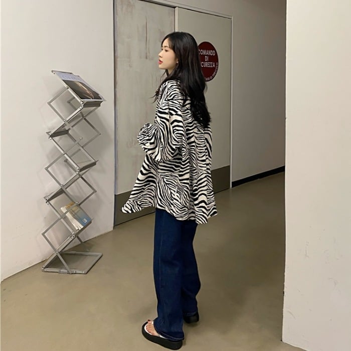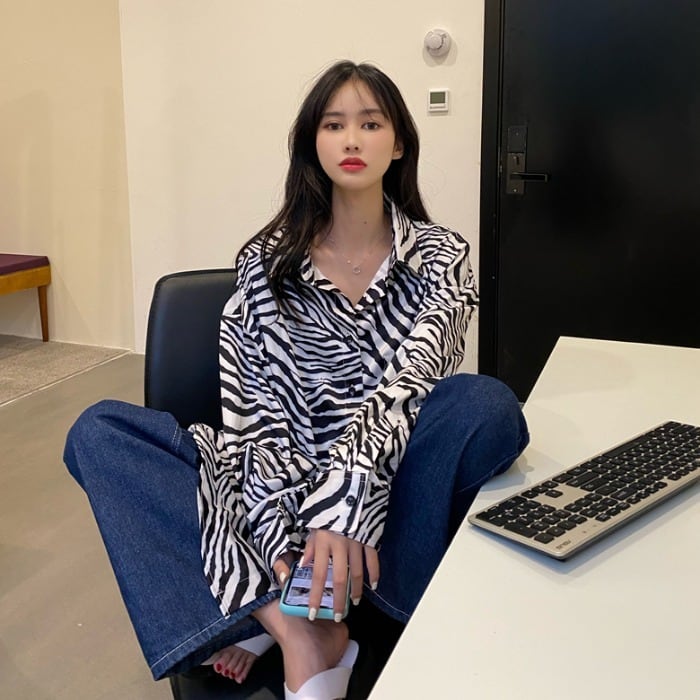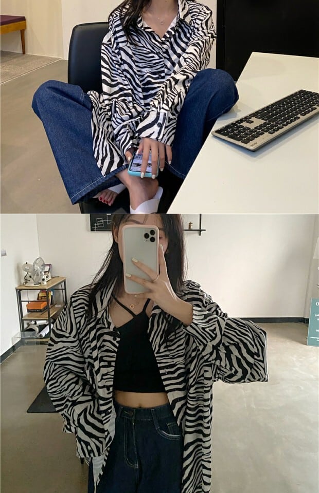 パターンスタンダードカジュアルシャツ ジャケット スプリングルーズ ロング レトロ 春物 kumikum17104682032