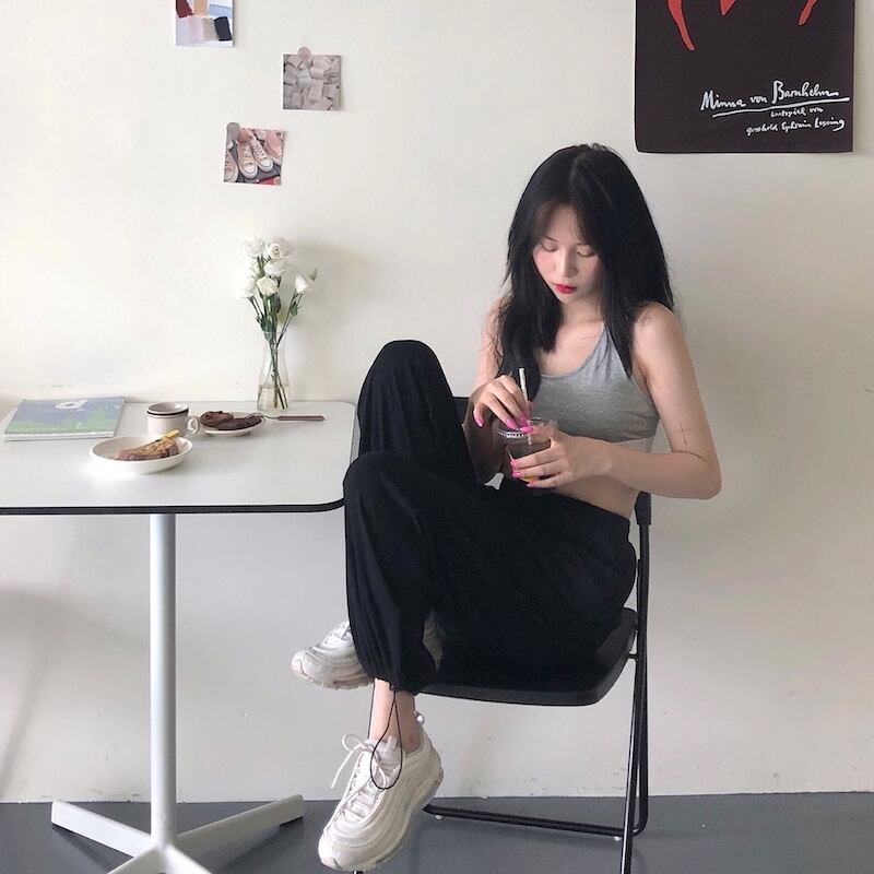 カジュアルパンツ ルーズ薄手ウェストストレッチハイウェスト エラスティック 伸縮 kumikum11289273001