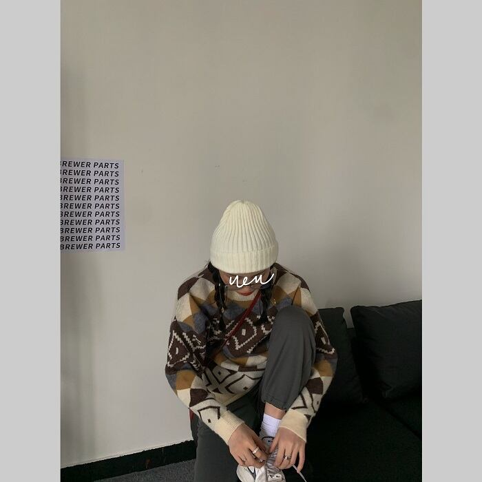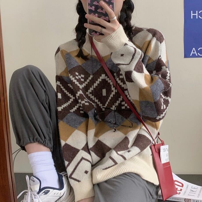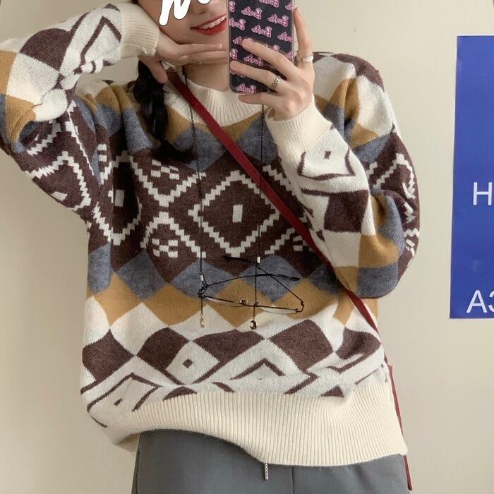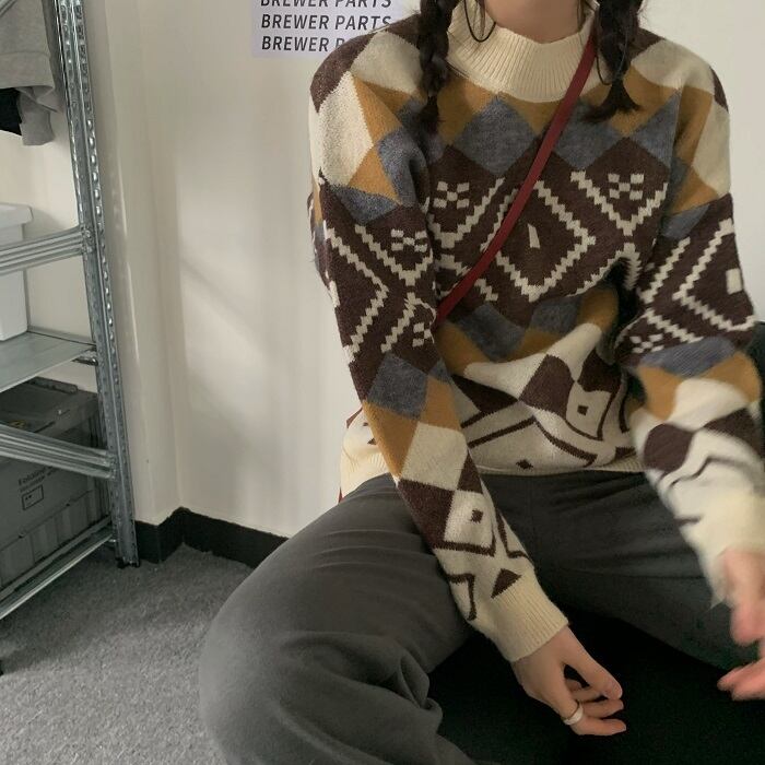 スタンダードカラールーズプルオーバー セーター トップス レディースオータム ロング レトロ 秋物 kumikum85423854741
