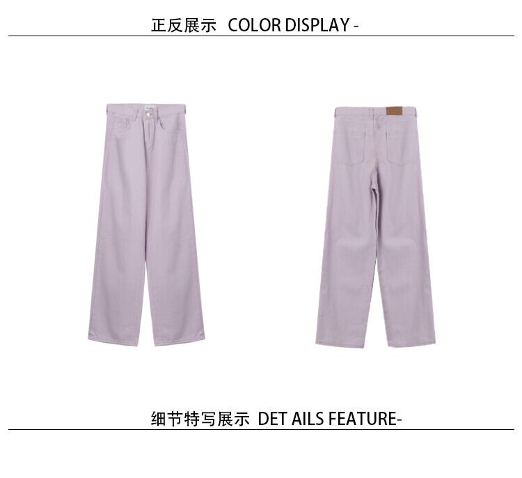 ジーンズ ハイウェストウェストパンツ カジュアルレディーススプリングルーズ薄手 春物 パープル kumikum9117971977