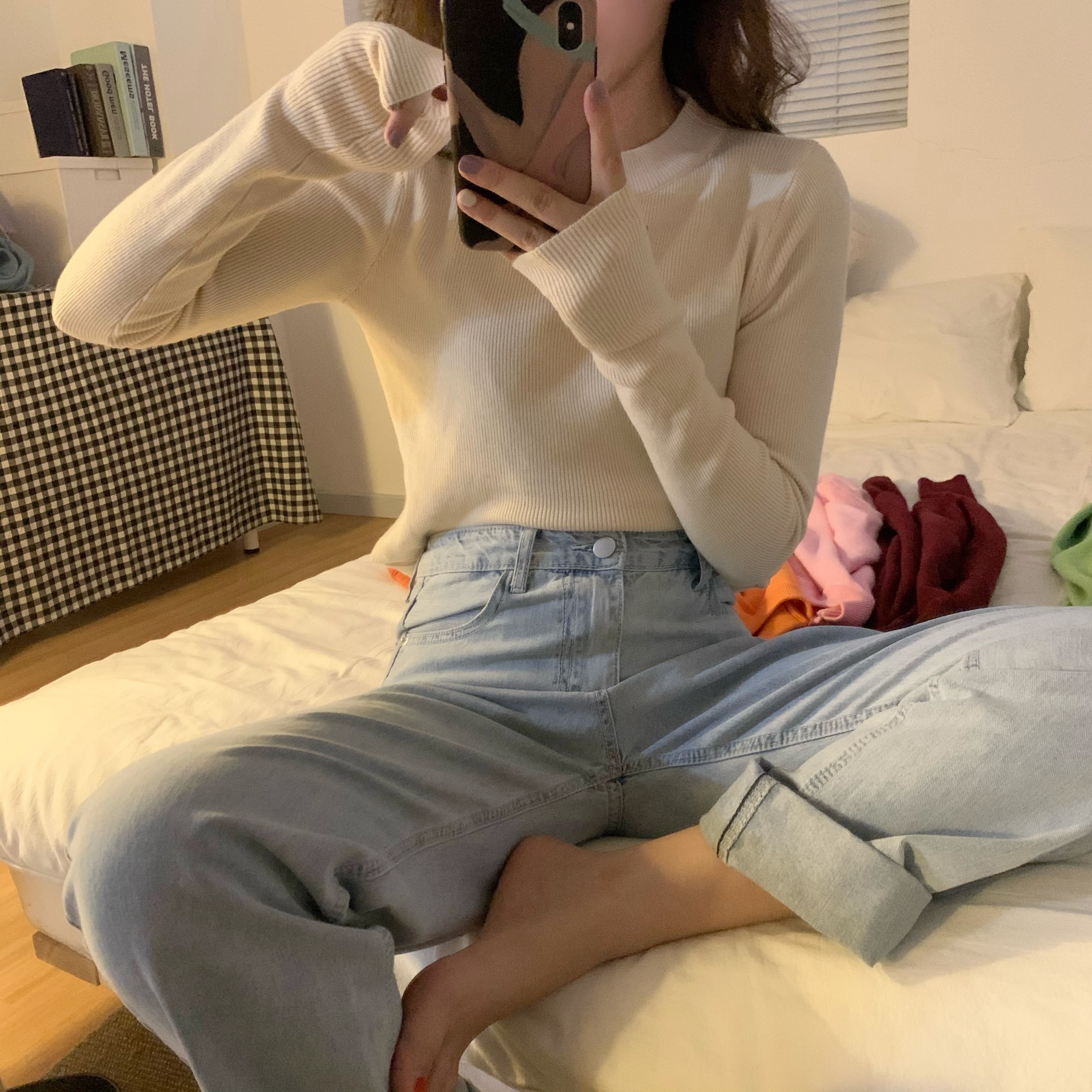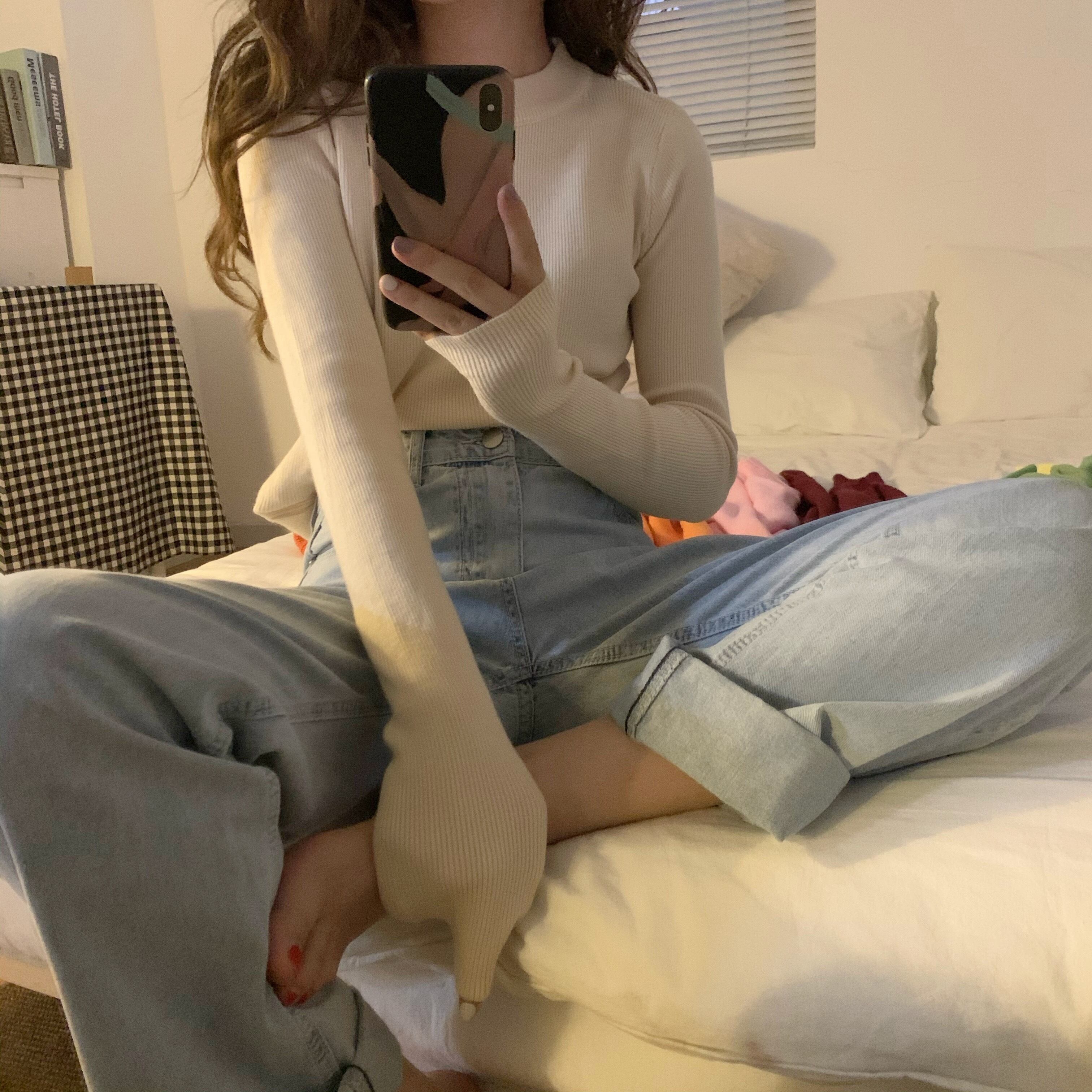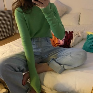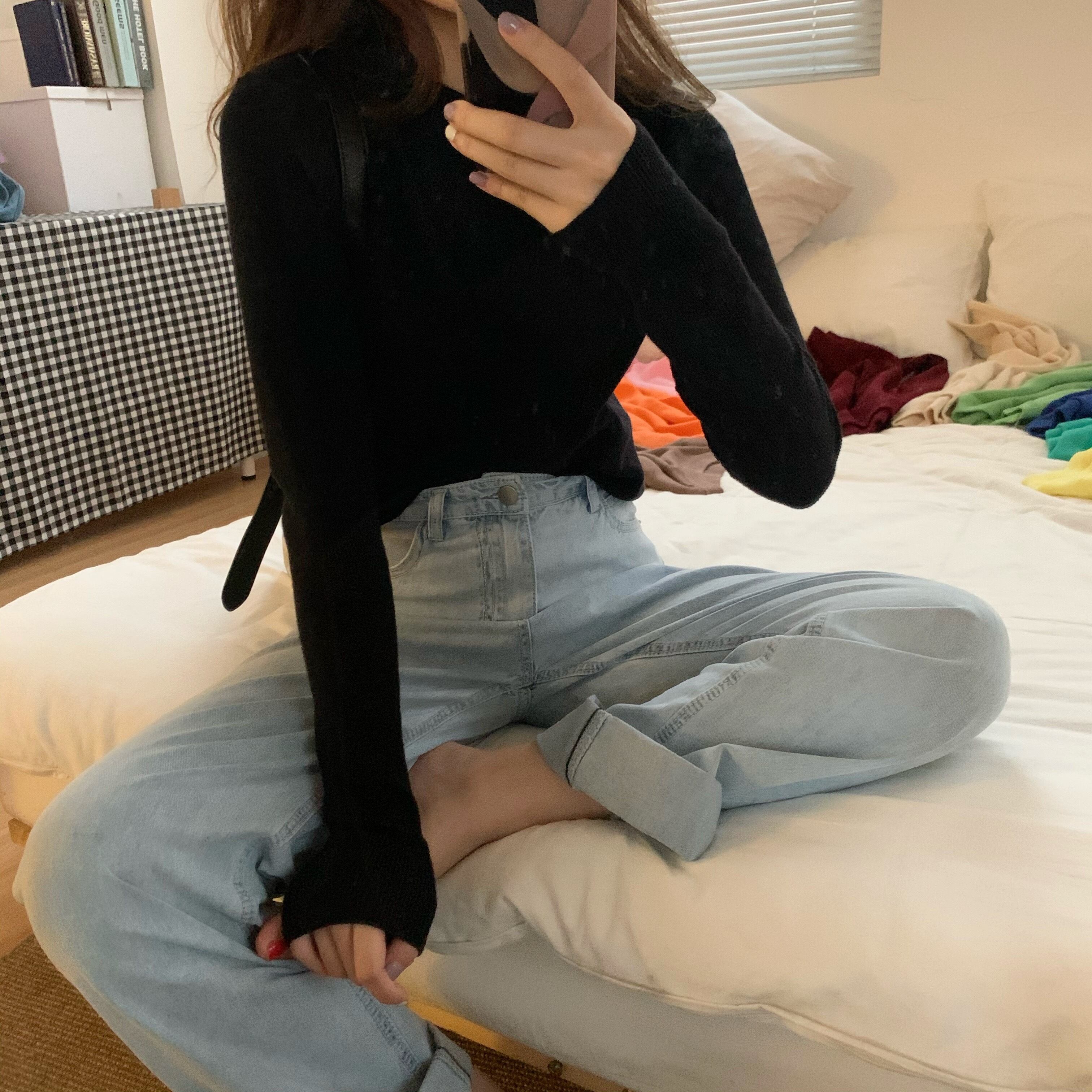 カラースリムブラックセーター シャツ トップス レディーススプリングプルオーバー ロング 春物 kumikum54592364962