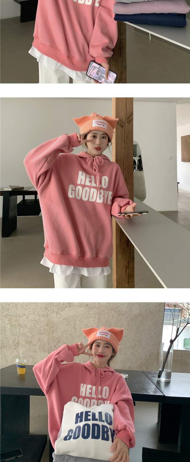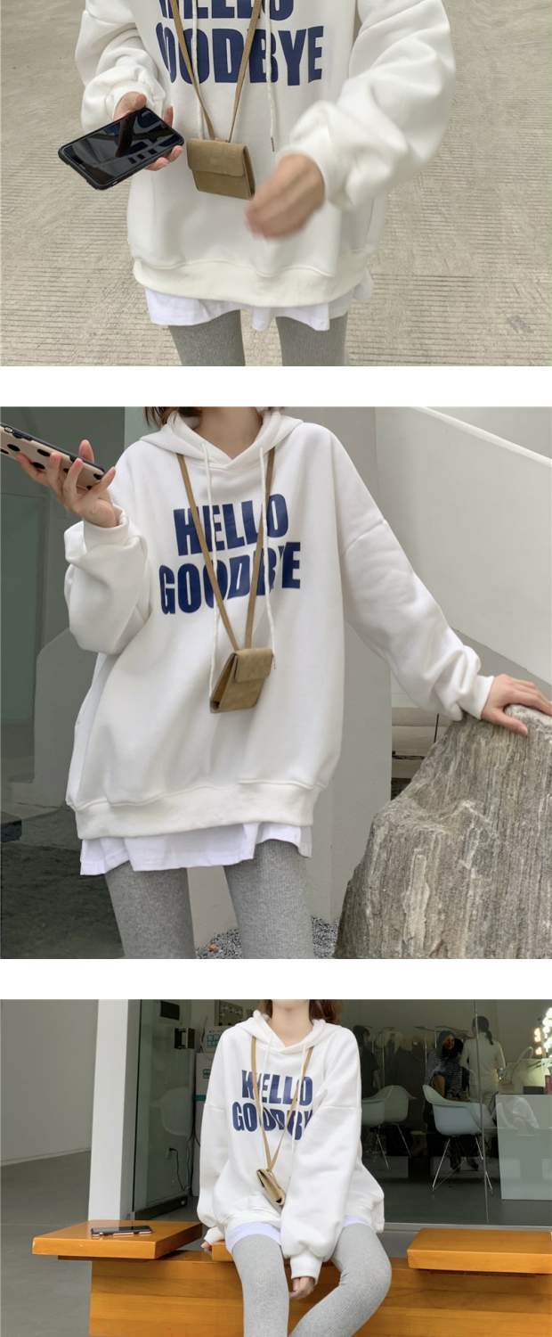 プリントフードセーター ジャケット スタイルルーズプルオーバー トップス オータムウィンター ロング 秋物 冬物 ステッチ kumikum513113253