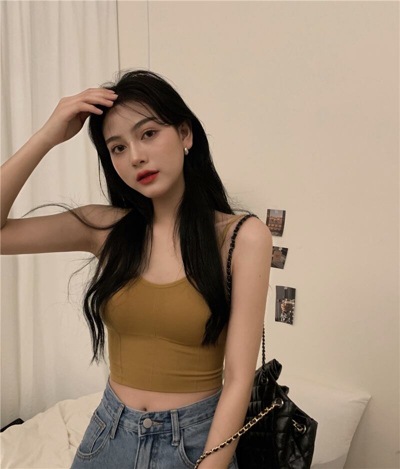 ショートノースリーブサマーソリッド カラーホルタートップス 半袖 ハーフスリーブ 夏物 ソリッドカラー kumikum98263384982