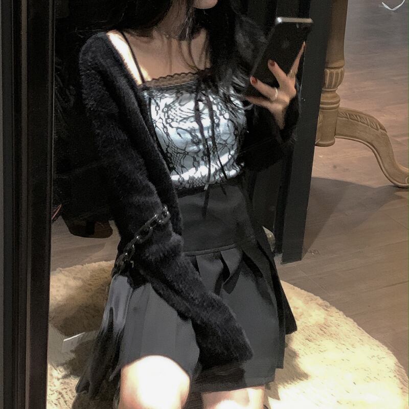 ショートニットカーディガンレーススプリングスカート 春物 kumikum15283962218
