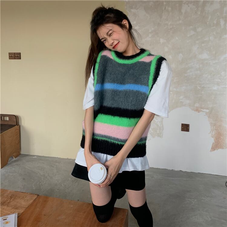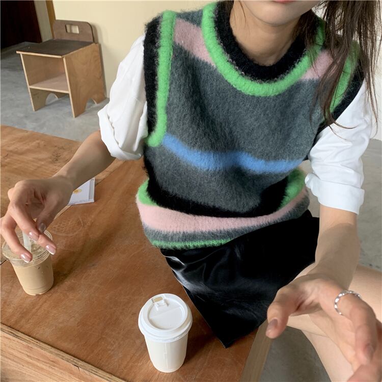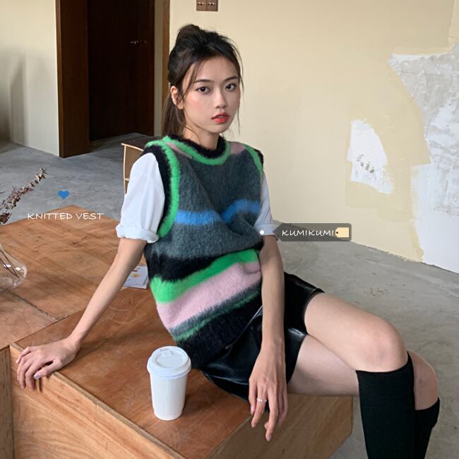 カラーノースリーブセーター レディーススプリングルーズニットトップス 春物 kumikum29221607190