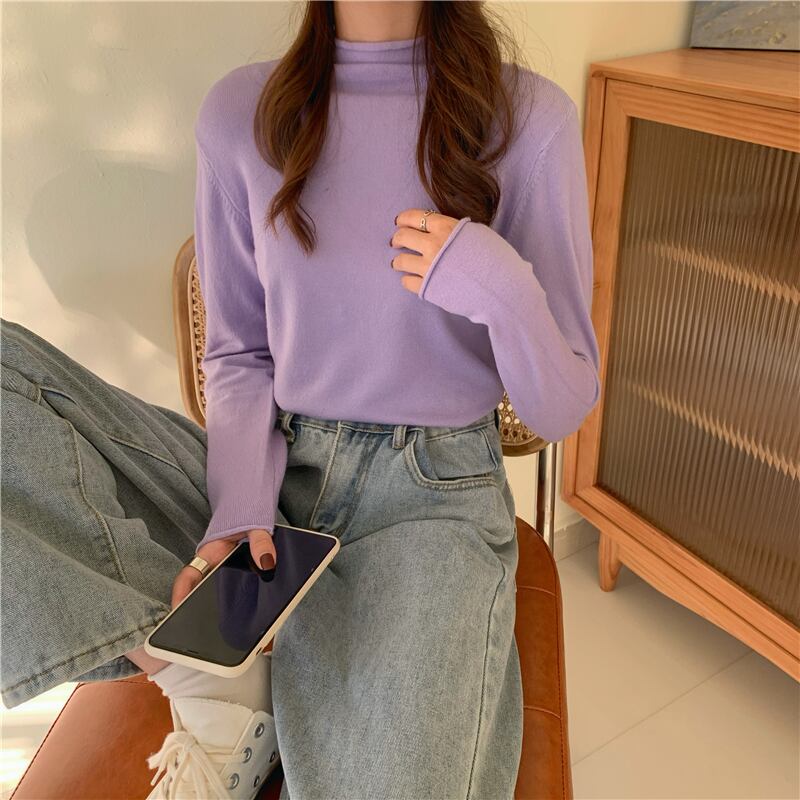 カラーセーター シャツ スプリング薄手ベーシックスリムトップス ロング 春物 kumikum63019459177