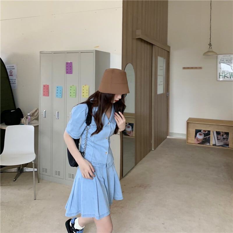 スリムトップス サマーハイウェストウェストプリーツスカート 夏物 kumikum55054389713