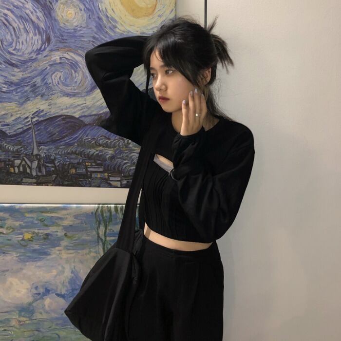 ショートブラックブラウス トップス オータムセーター ロング 秋物 kumikum92447989882