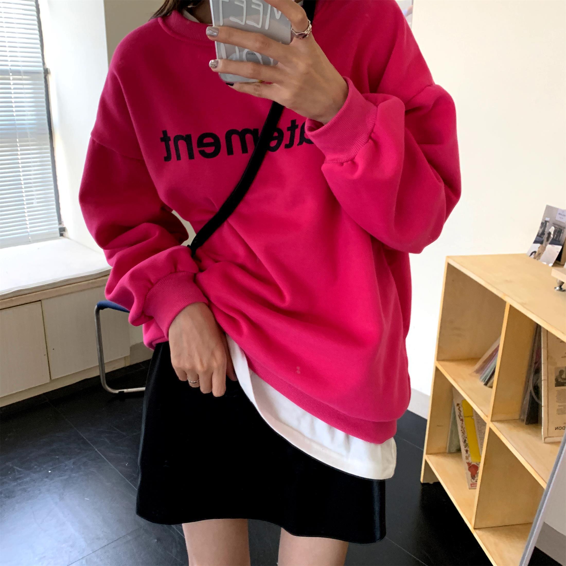 プリントブラウス レディーススプリングルーズベルベットラウンドネックセーター ジャケット ロング 春物 Oネック kumikum19045315057