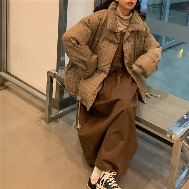 スタンダード格子柄ジャケット ウィンタールーズ ロング コットン レトロ 冬物 kumikum58902490974