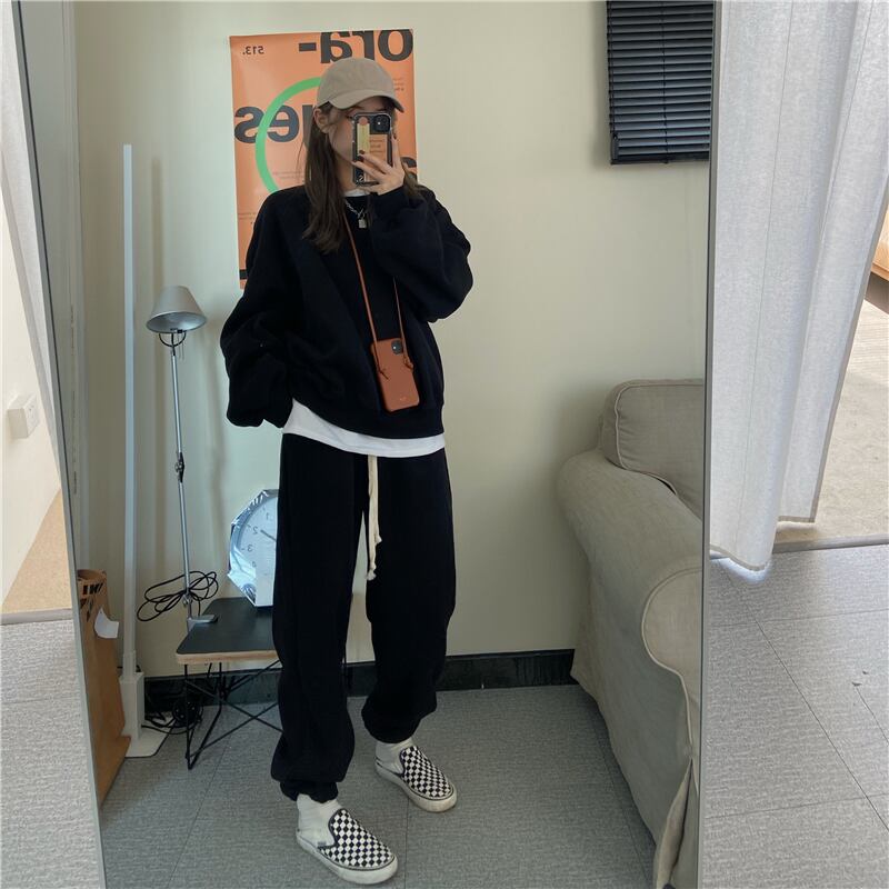 セット オータムウィンターベルベットラウンドネックセーター ジャケット レディースルーズカジュアルパンツ 秋物 冬物 Oネック kumikum34350320355