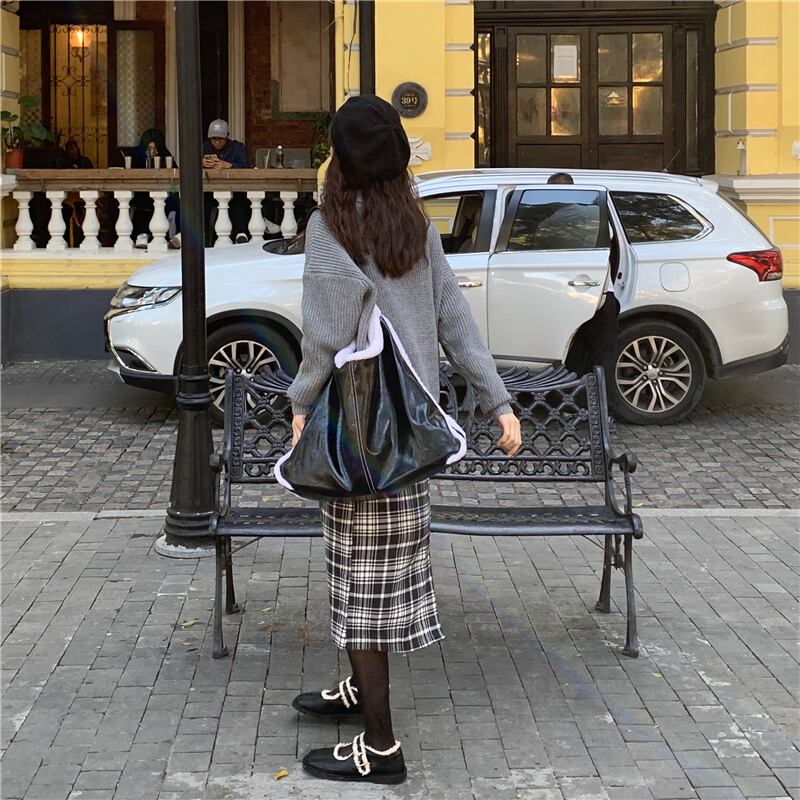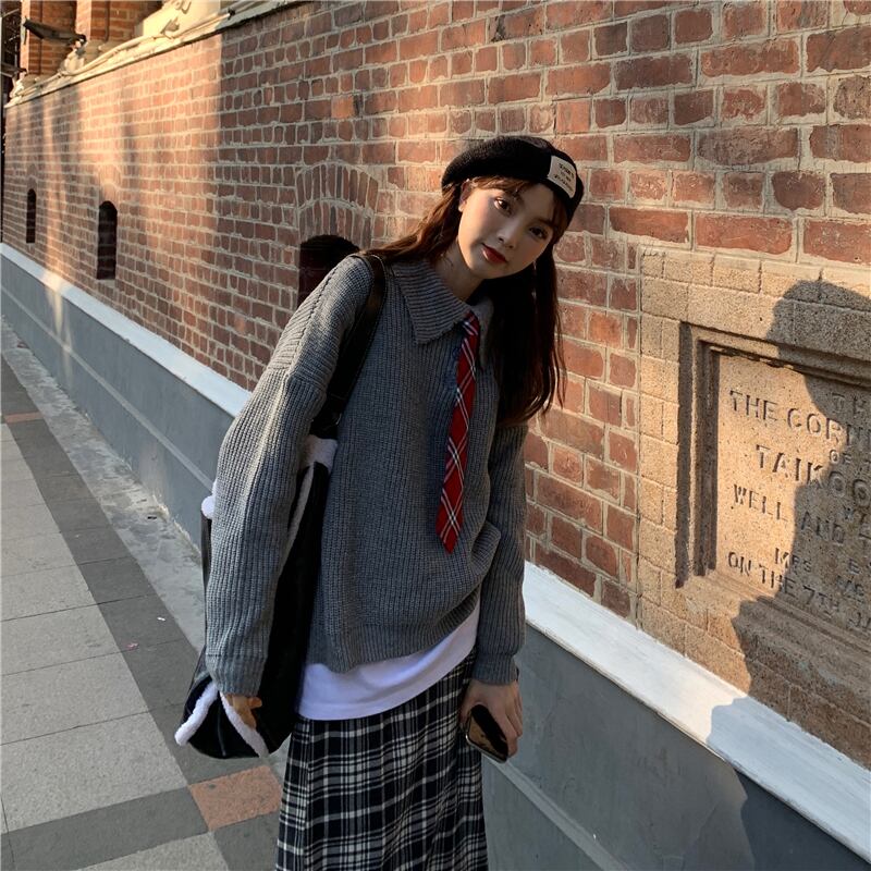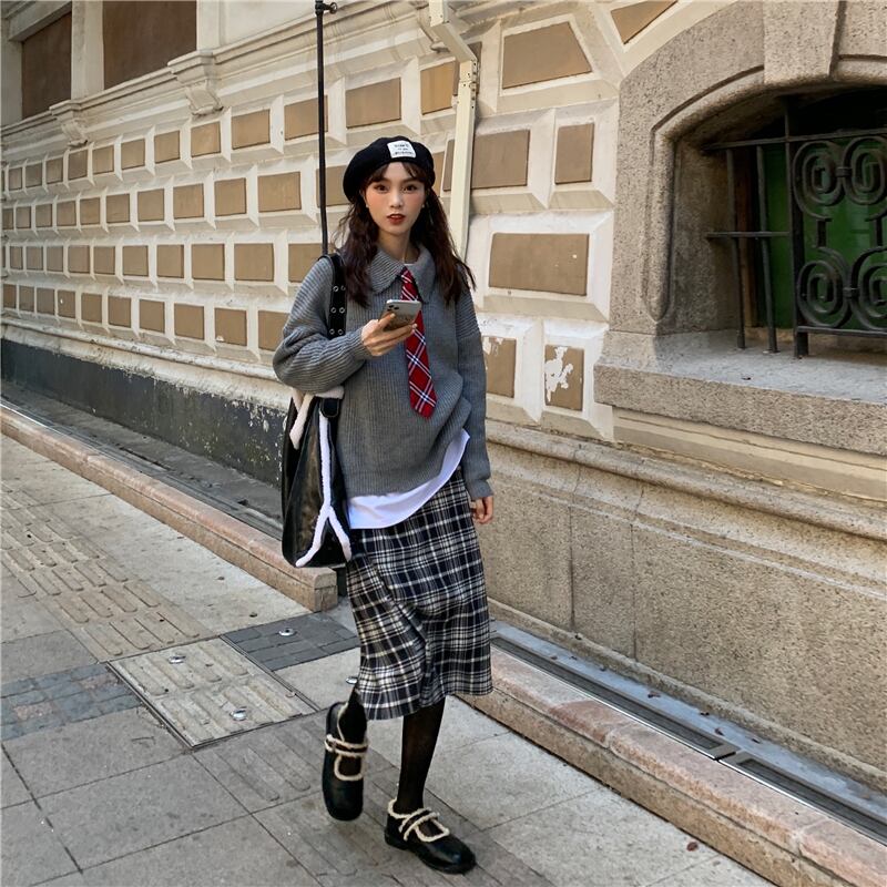 スタイルソリッド カラープルオーバー セーター ウィンター格子柄スカート 冬物 ソリッドカラー kumikum64905540074