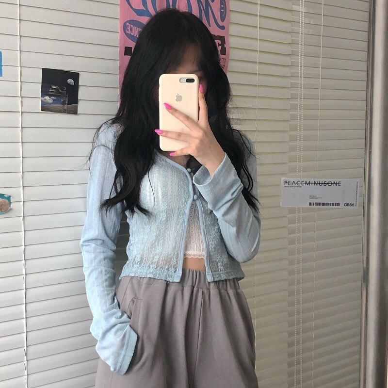 チェーン Flowerデザイン レースシャツ レディースオータム薄手ショートスリムトップス ロング 秋物 フラワーデザイン kumikum43748419065