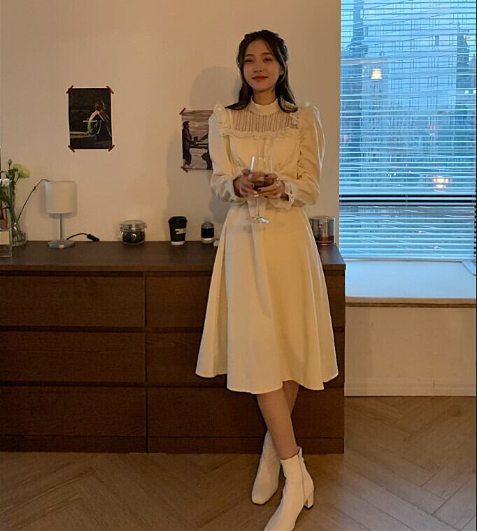 スタイルレーススカート ウィンタードレス ロング 冬物 ステッチ kumikum1623438603