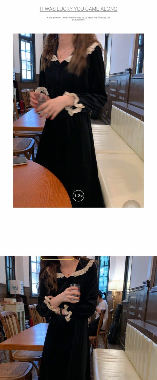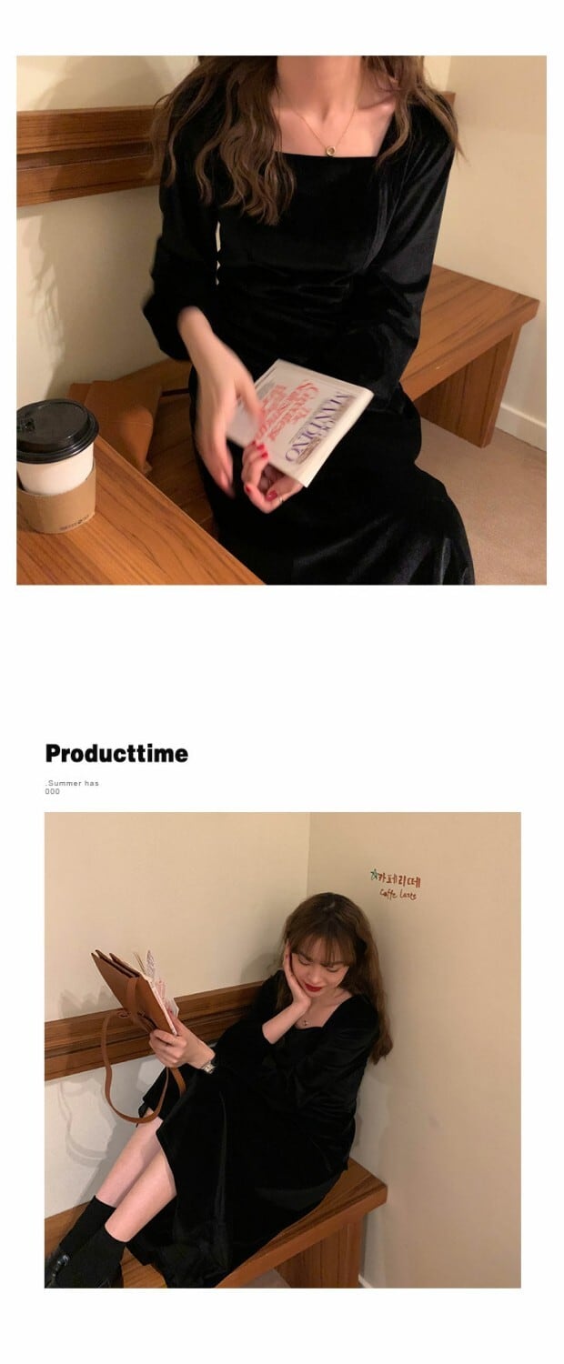 ブラックベルベットスカート ウィンターウェスト長袖スリーブドレス ロング 冬物 スクウェア kumikum41640465267