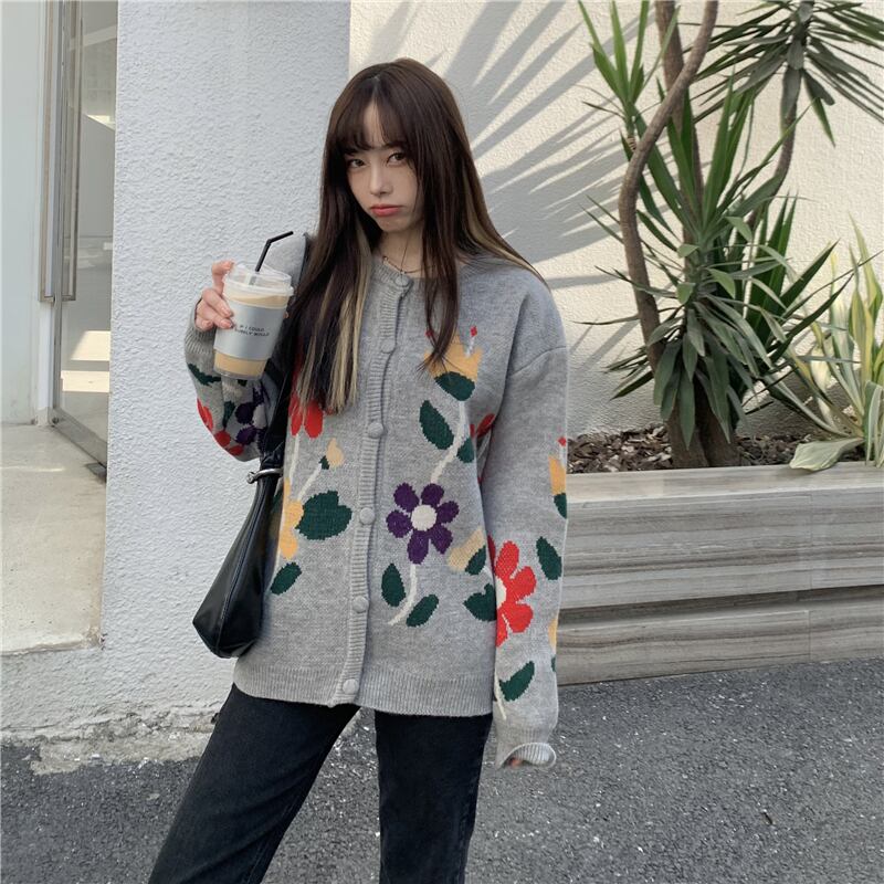 ヴィンテージジャカードラウンドネックセーター カーディガンジャケット レディースウィンタールーズトップス ロング 冬物 Oネック ビンテージ kumikum71357645230