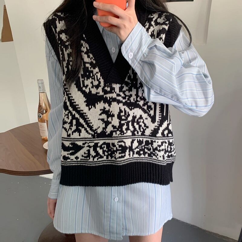 スタンダードVネックニットプルオーバー セーター レディースオータムルーズジャケット レトロ 秋物 kumikum43547548467