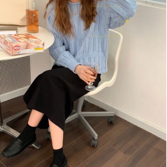 スタンダードニットセーター トップス オータムルーズプルオーバー ロング レトロ 秋物 kumikum20035485081