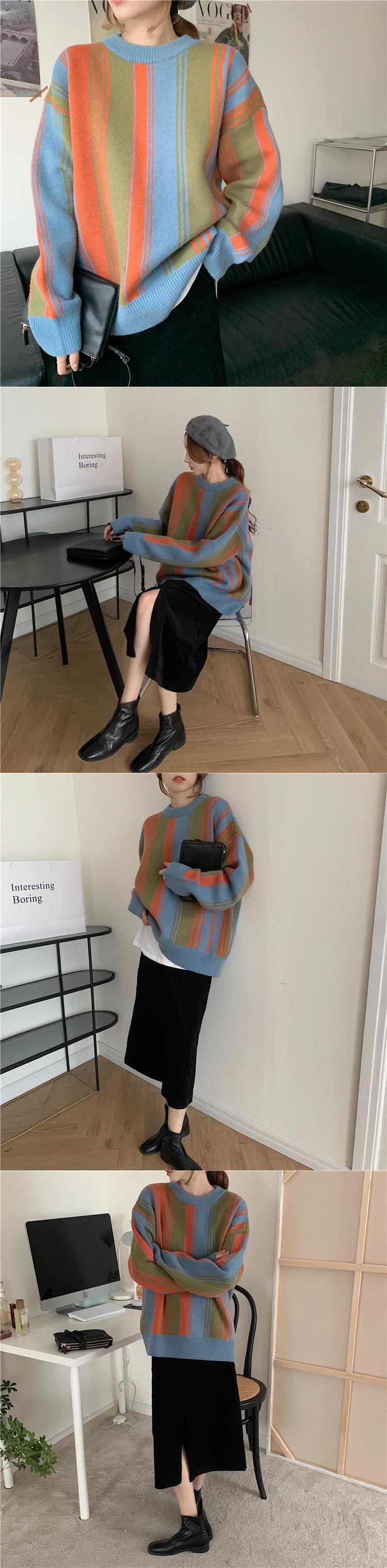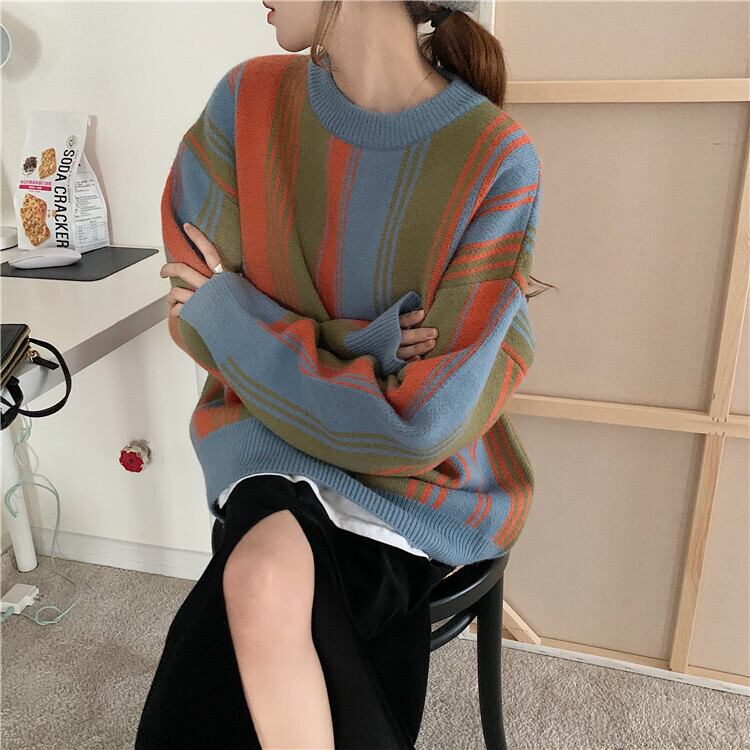スタンダードストライプセーター レディースウィンタールーズカジュアルプルオーバー レトロ 冬物 kumikum91611915588
