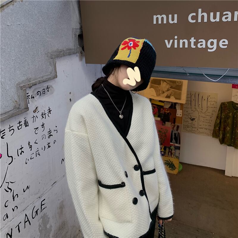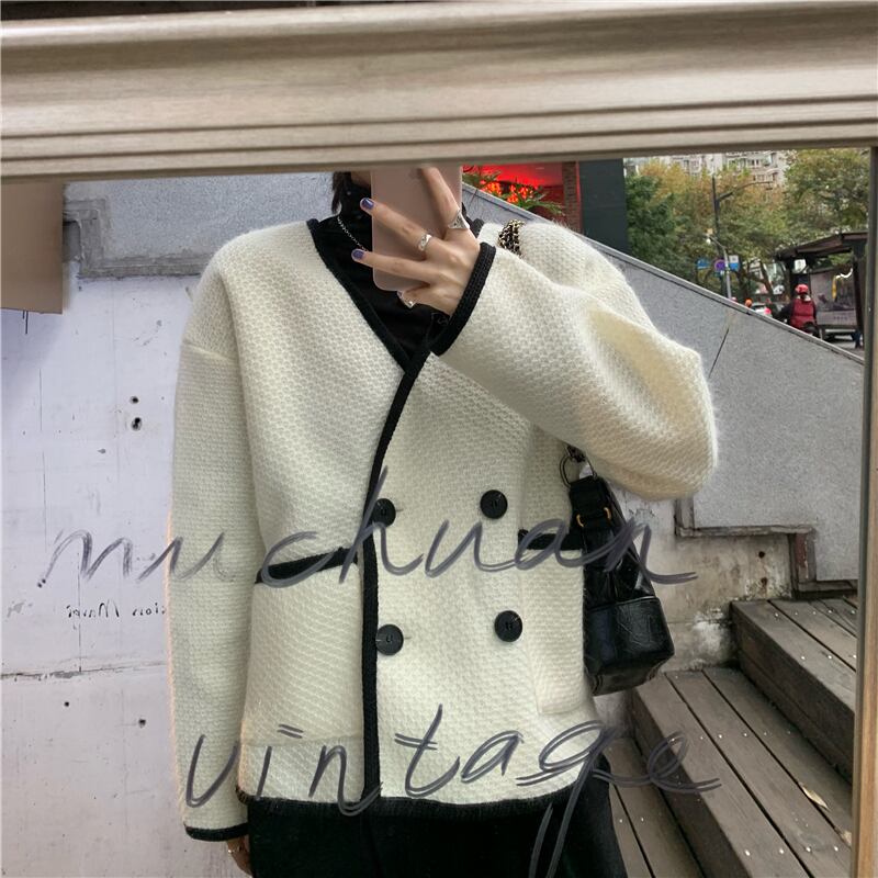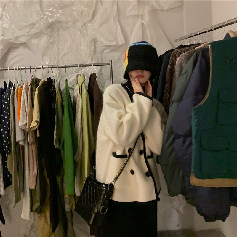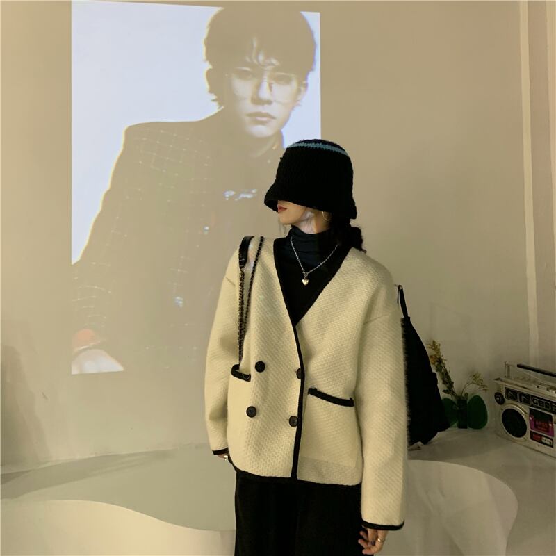 スタンダードカラーVネックカジュアルジャケット ウィンタールーズトップス ロング レトロ 冬物 kumikum61045618677
