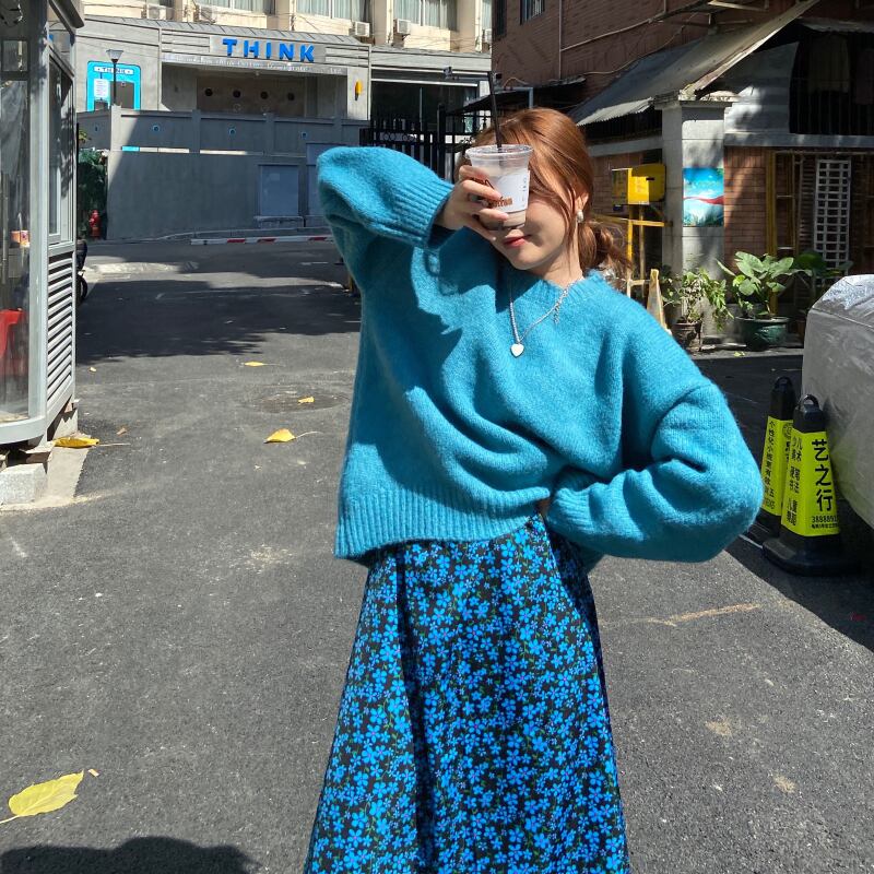オータムウィンタースタイルルーズニットセーター フローラルスカート 秋物 冬物 花柄 kumikum48643068272