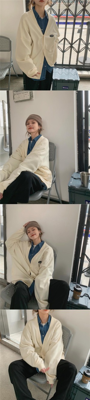 ホワイトカーディガンジャケット スプリングルーズニットトップス 春物 kumikum37293591562
