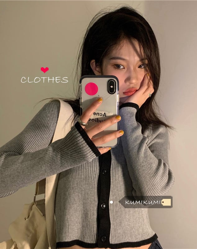 ショートストライプカラーセーター ニットレディーススリムカーディガンスプリングトップス ロング 春物 kumikum54089166591