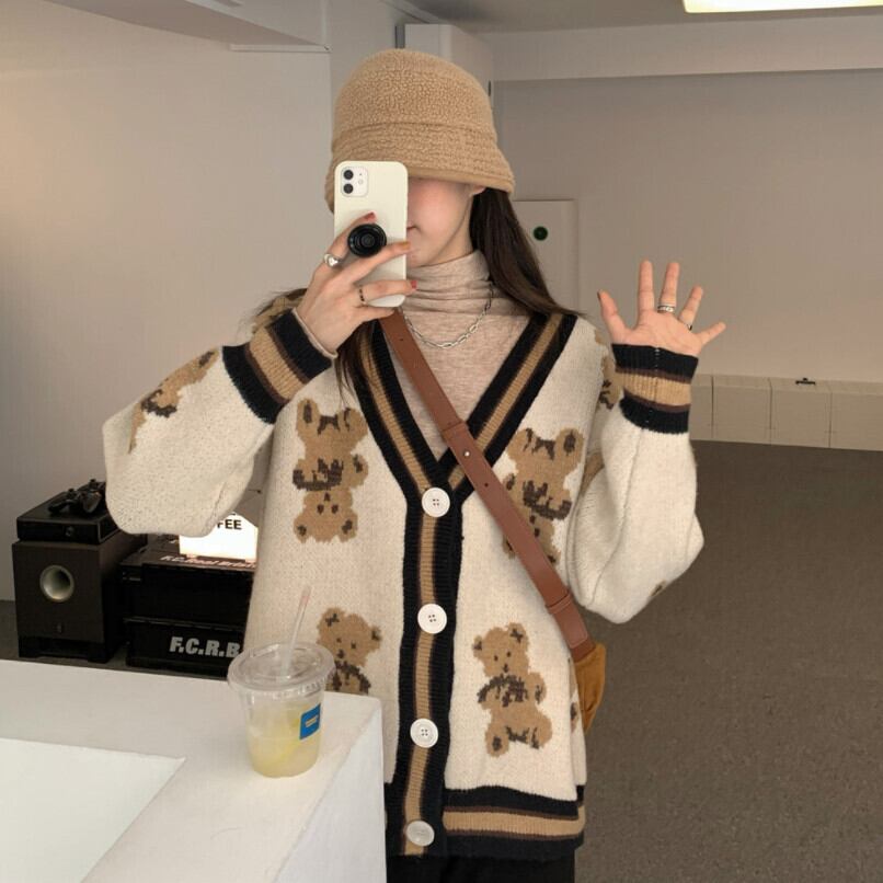 スタイルルーズセーター カーディガンウィンターVネックパターントップス ロング 冬物 kumikum88859211694