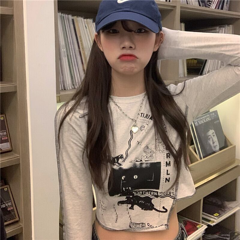 ショートプリントTシャツ スプリングスリムレッドトップス レディース ロング 春物 kumikum8585780427