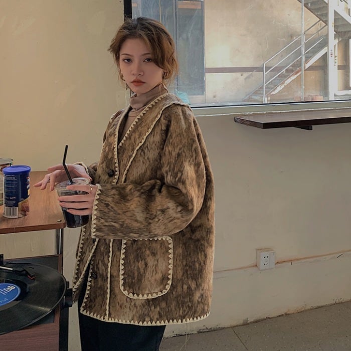ファーコート レディースウィンタールーズスタンダードVネックカーディガントップス レトロ 冬物 kumikum51997411726