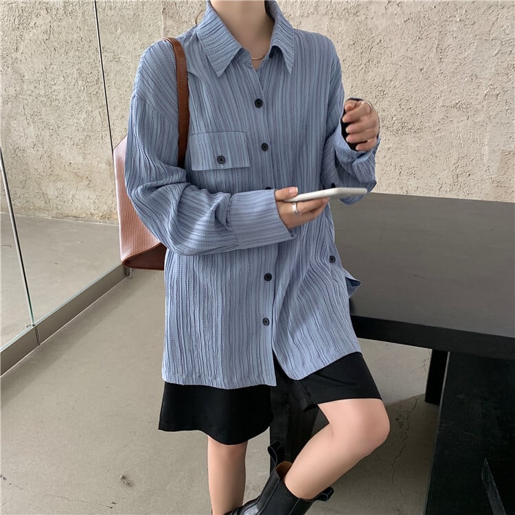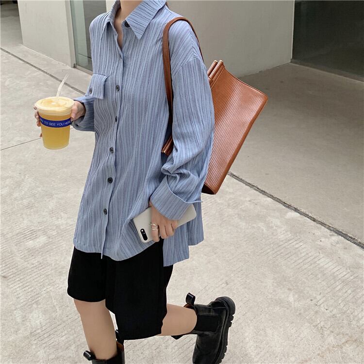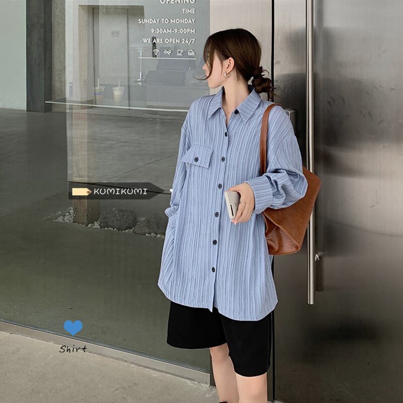 スタンダードスタイルストライプシャツ トップス スプリングロングルーズカジュアル レトロ 春物 kumikum52233671717