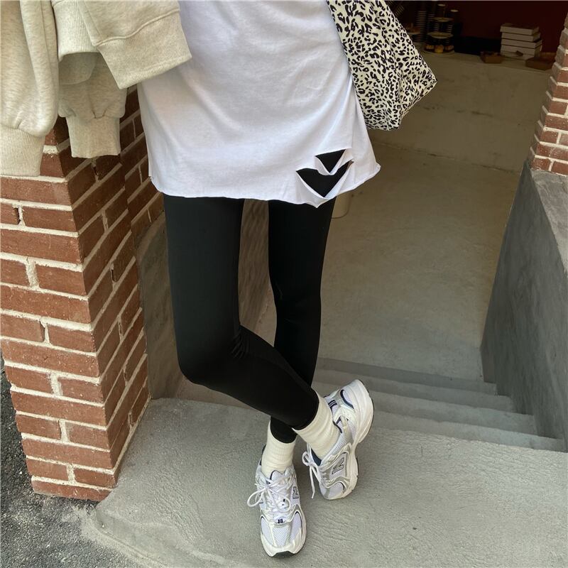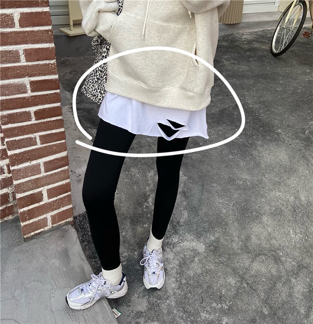 レッドホワイトルーズシャツ トップス ウィンターラウンドネックTシャツ ロング 冬物 Oネック kumikum53001248856