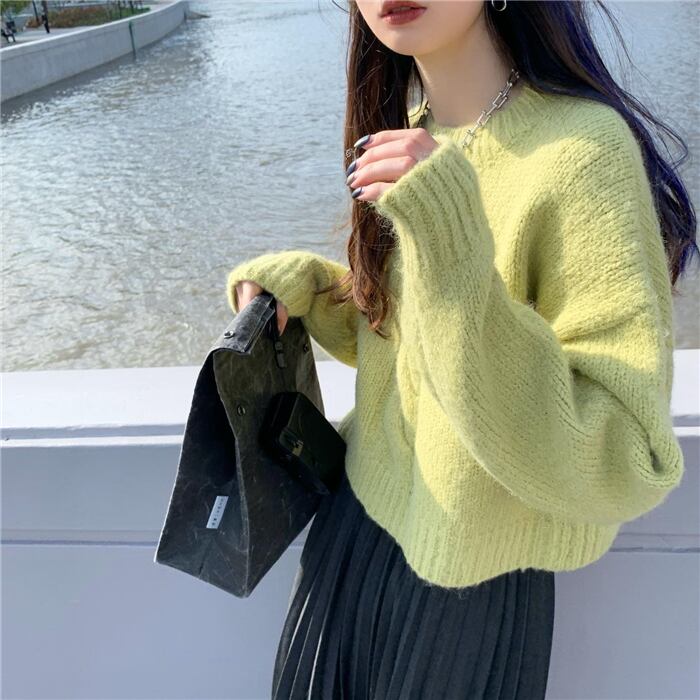 ショートスタンダードセーター ラウンドネックトップス レディースウィンタールーズレッドプルオーバー ロング レトロ 冬物 Oネック kumikum83449236794