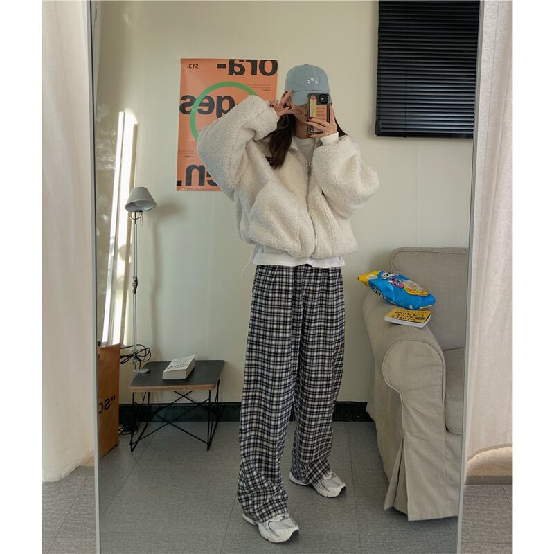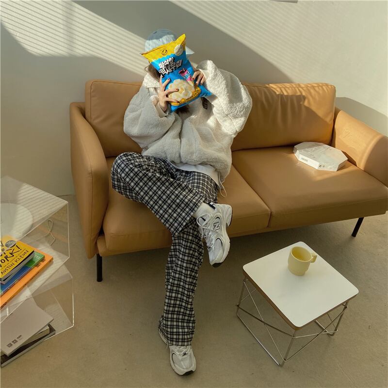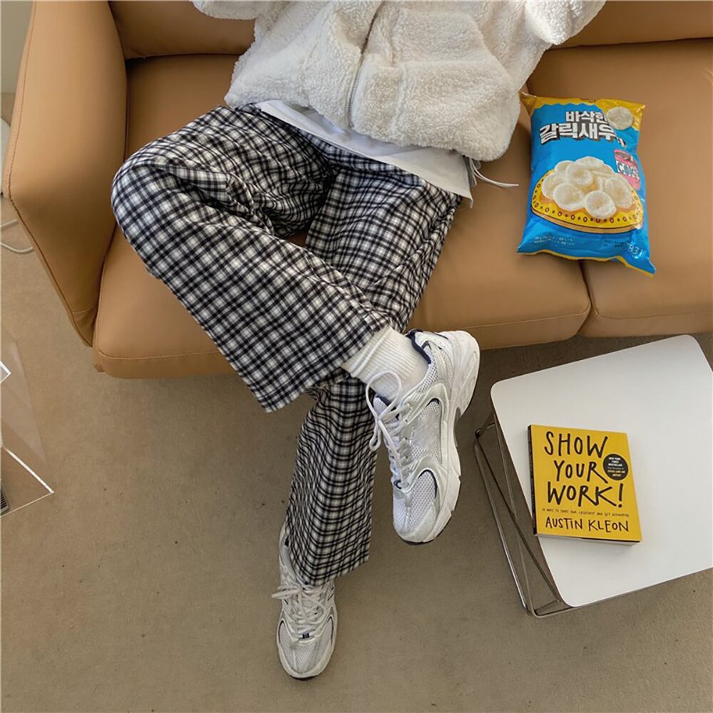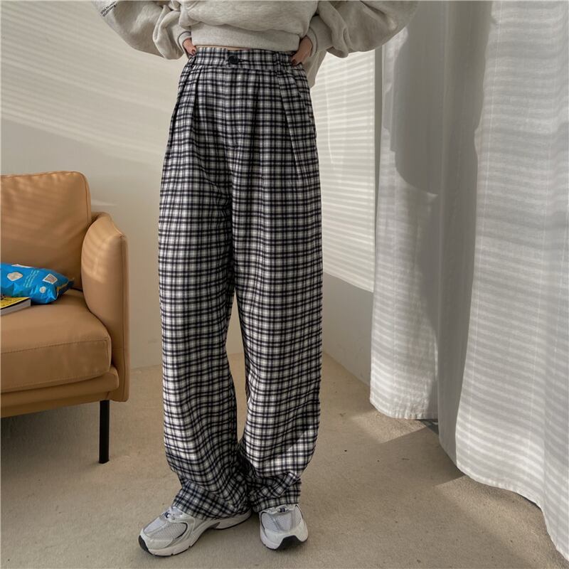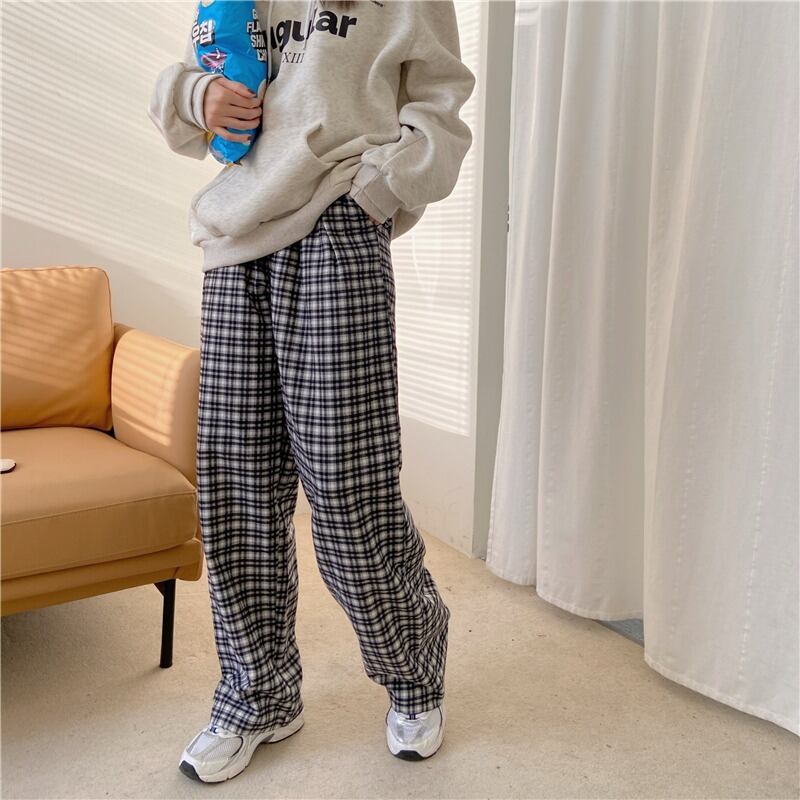 スタンダード格子柄オータムウィンタールーズカジュアル ハイウェスト レトロ 秋物 冬物 kumikum41864324566