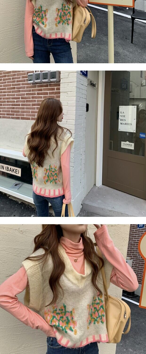 スタンダードジャカードVネックニットプルオーバー セーター レディースウィンタールーズトップス レトロ 冬物 kumikum76148840629