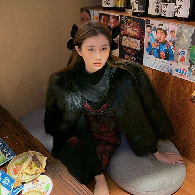 色:赤いグリッドサスペンダースカートS,赤いグリッドサスペンダースカートM,フェイクファージャケット