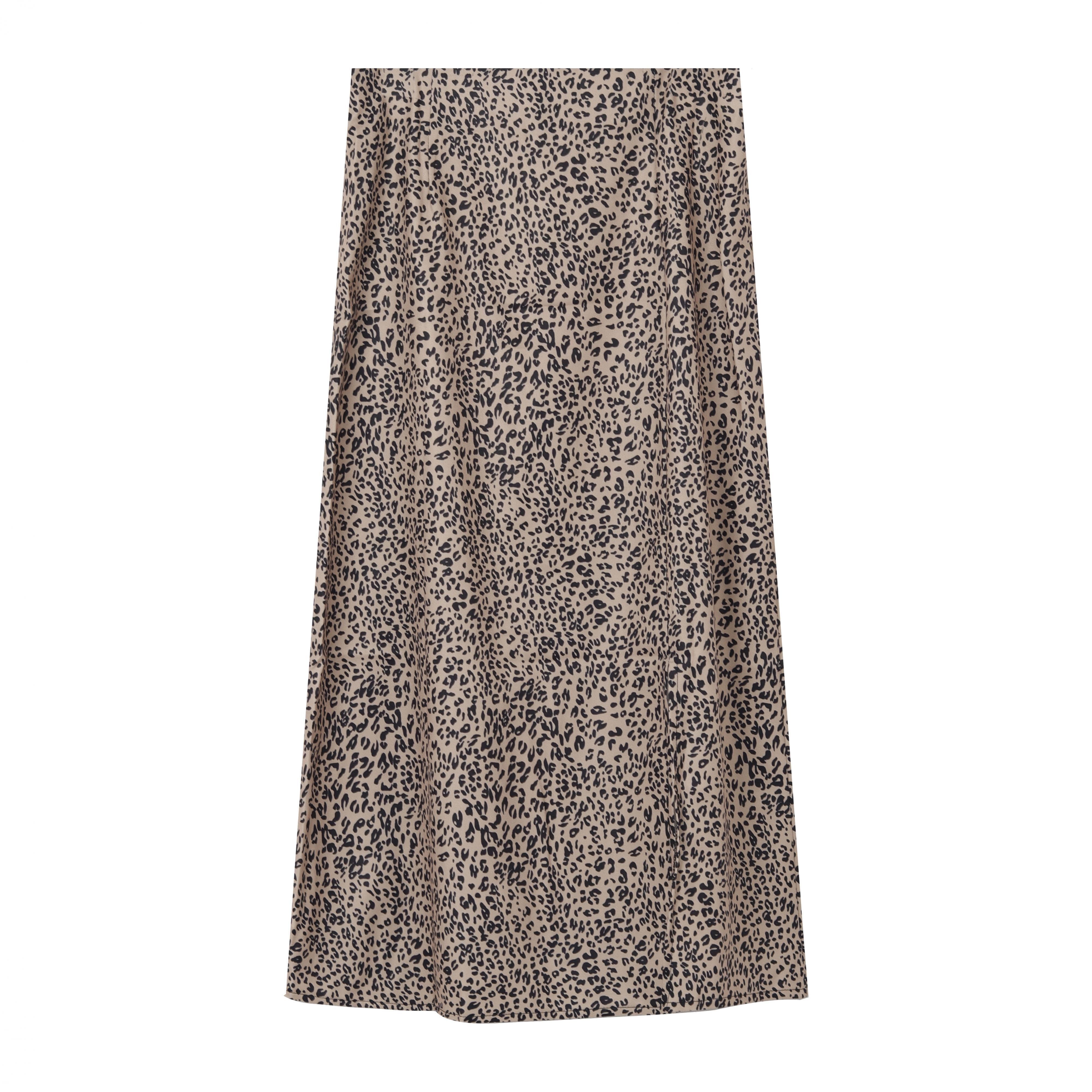 サイドスリットレオパードプリント柄スカート レディーススプリングスタンダードハイウェストウェスト薄手Aライン レトロ 春物 kumikum56201041732