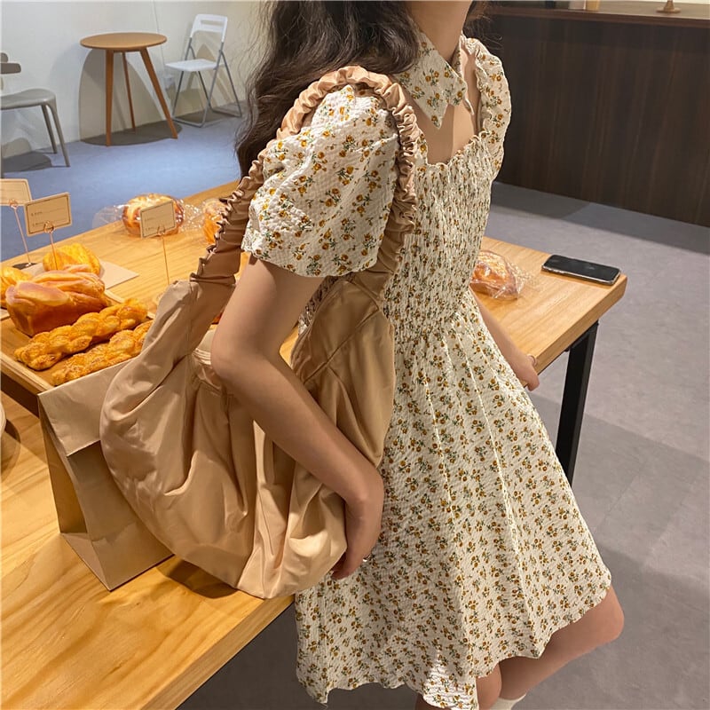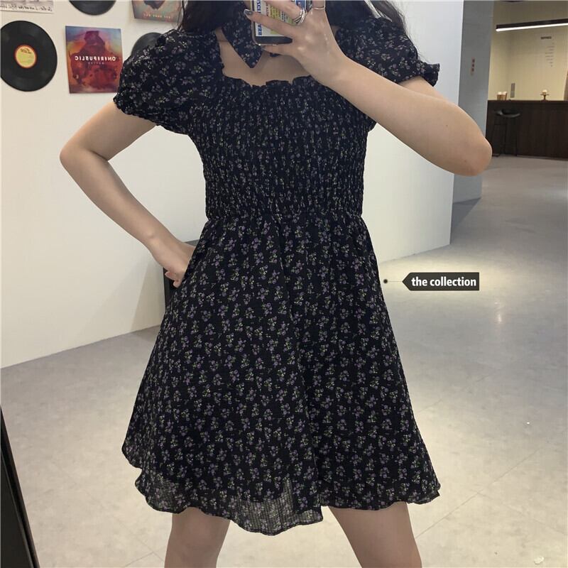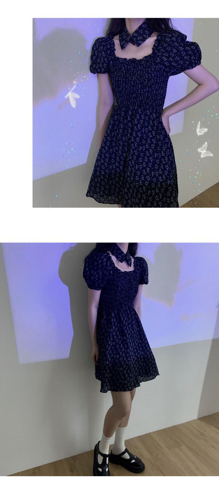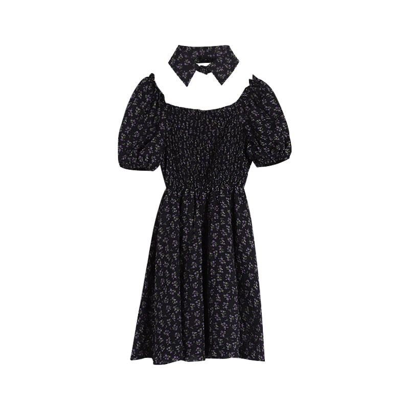 スタイルフローラルスリーブドレス サマーウェスト半袖スカート カラー ショート ハーフスリーブ 夏物 花柄 kumikum12483956914