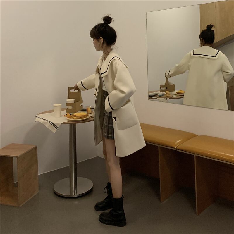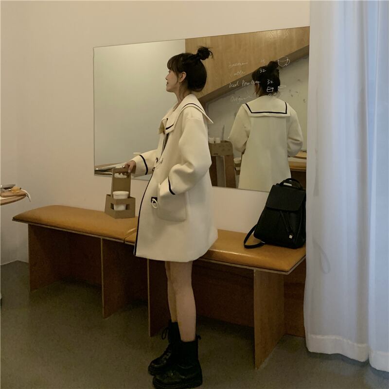 ネイビーカラーボタンコート レディースオータムウィンタールーズカジュアル ロング 秋物 冬物 kumikum49206727249