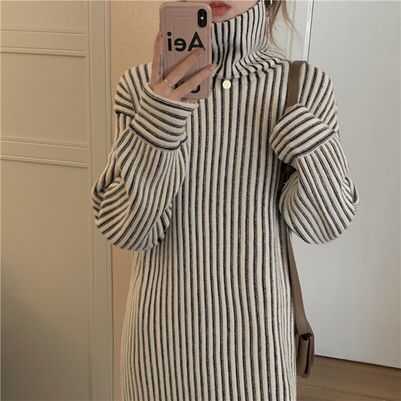ストライプセーター スカート レディースウィンタールーズニットドレス ロング 冬物 kumikum95369112259