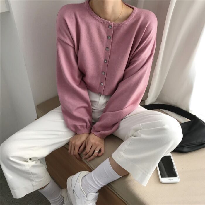スプリングカラーニットセーター ルーズカジュアル薄手カーディガンジャケット 春物 kumikum22947258417