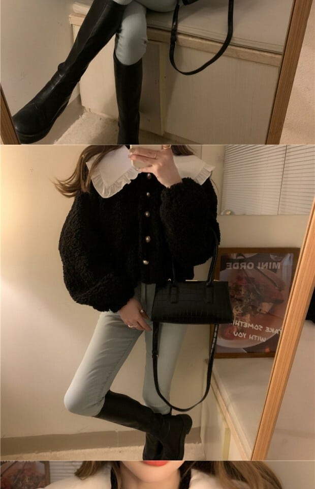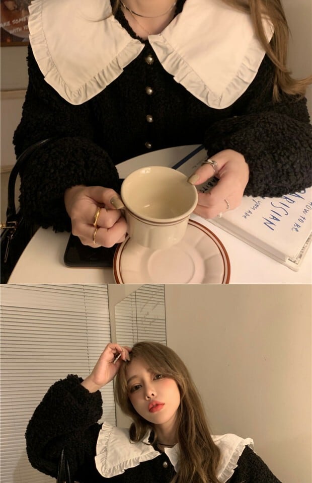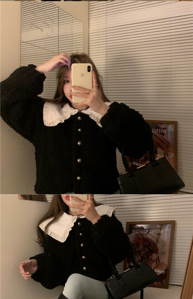 カラーウールジャケット ウィンタールーズショートカーディガントップス 冬物 kumikum80364151098