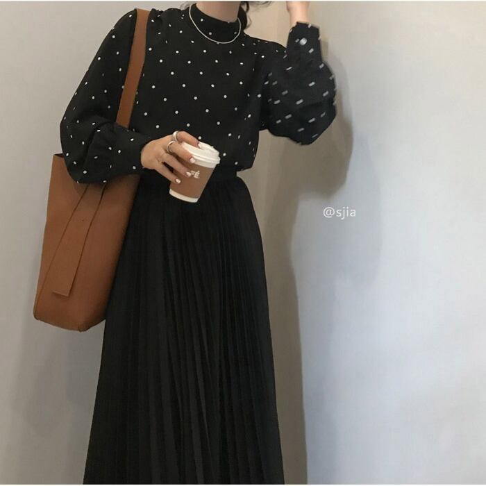 スタンダードスリーブシャツ ブラウス オータムウィンタールーズカラー ロング レトロ 秋物 冬物 kumikum27490469523