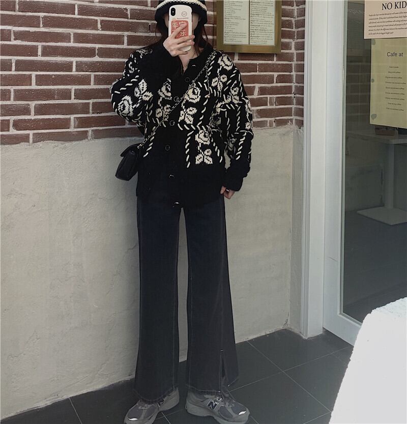 スタンダードジーンズ ウィンターパンツ ハイウェストウェストスリムルーズワイドレッグ レトロ 冬物 ワイドパンツ kumikum71625885473