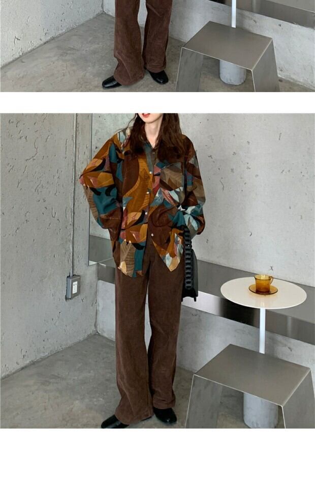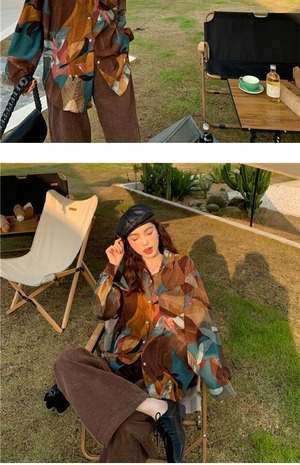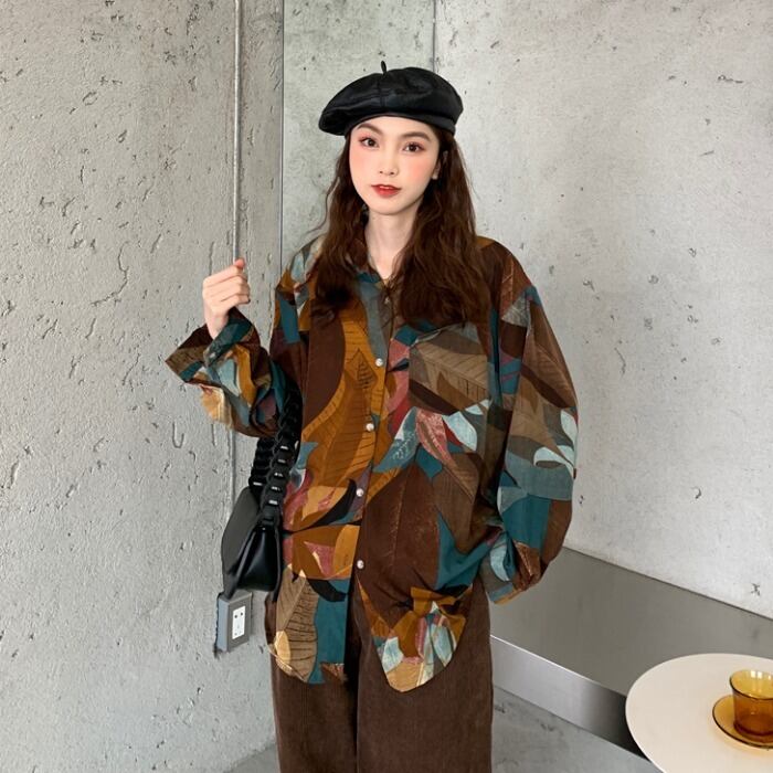 スタイルスタンダードシャツ ジャケット スプリングルーズトップス ロング レトロ 春物 kumikum47766500559