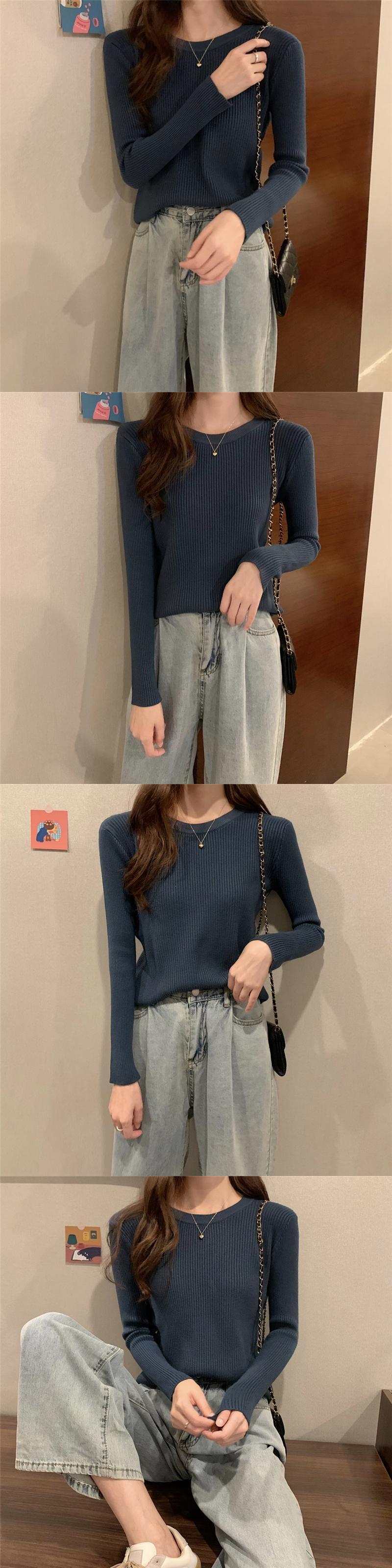 スリムラウンドネックシャツ オータムウィンター薄手プルオーバー セーター ロング 秋物 冬物 Oネック kumikum64843633454