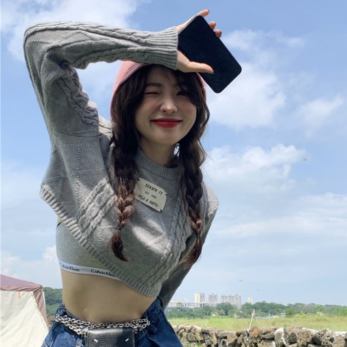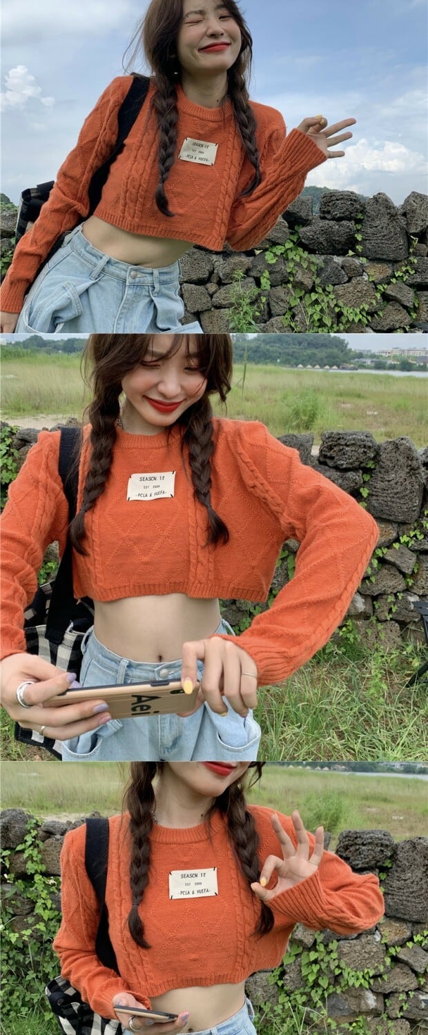 ショートニットセーター トップス レディーススプリングスタンダードプルオーバー ロング レトロ 春物 kumikum51846409085